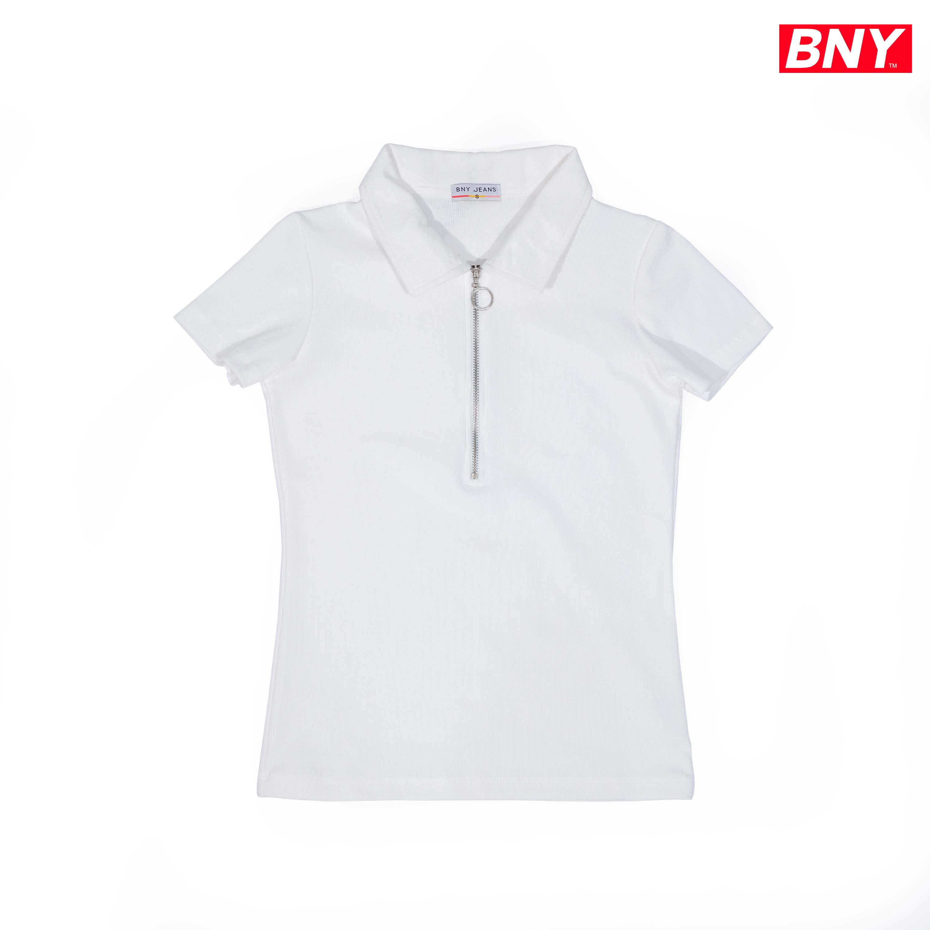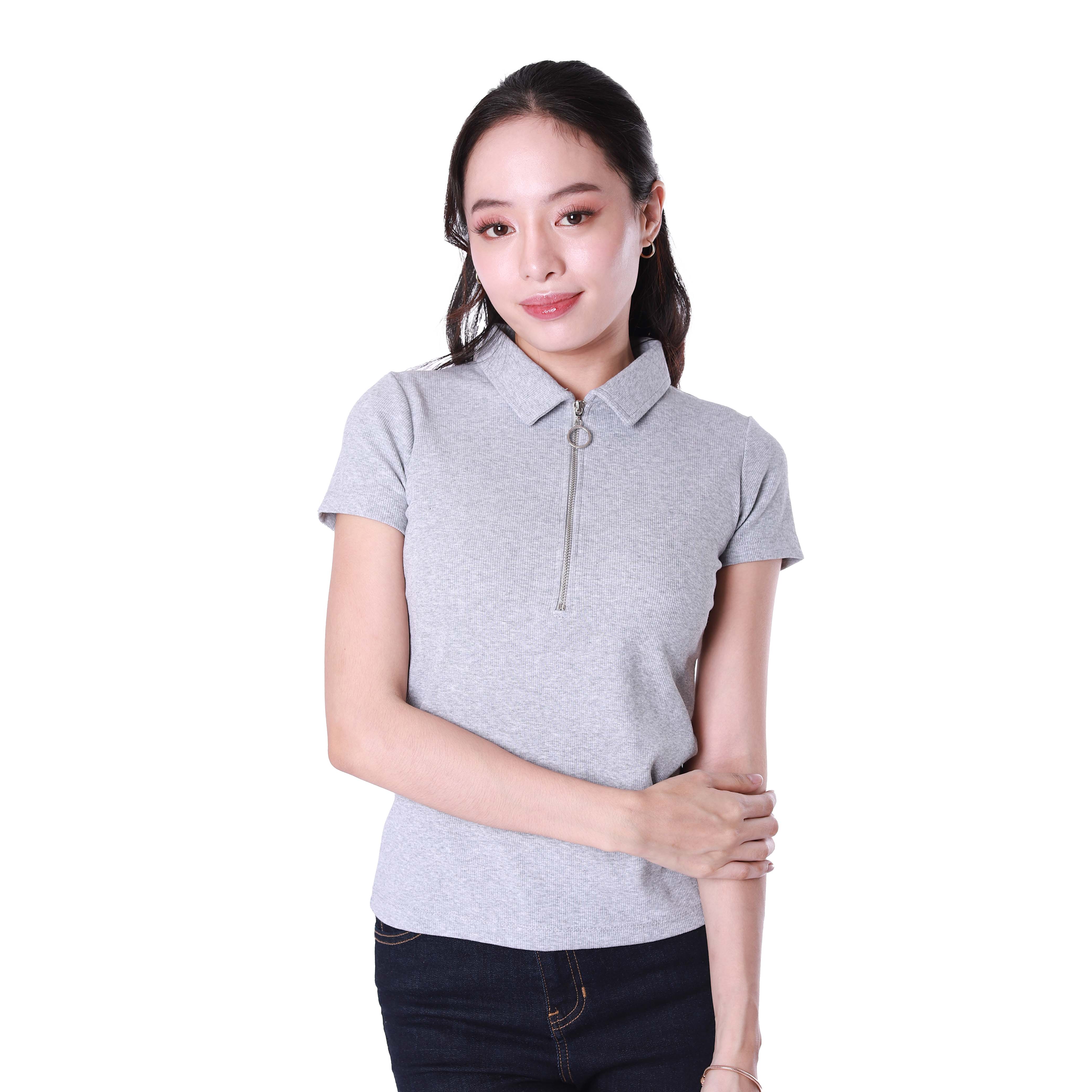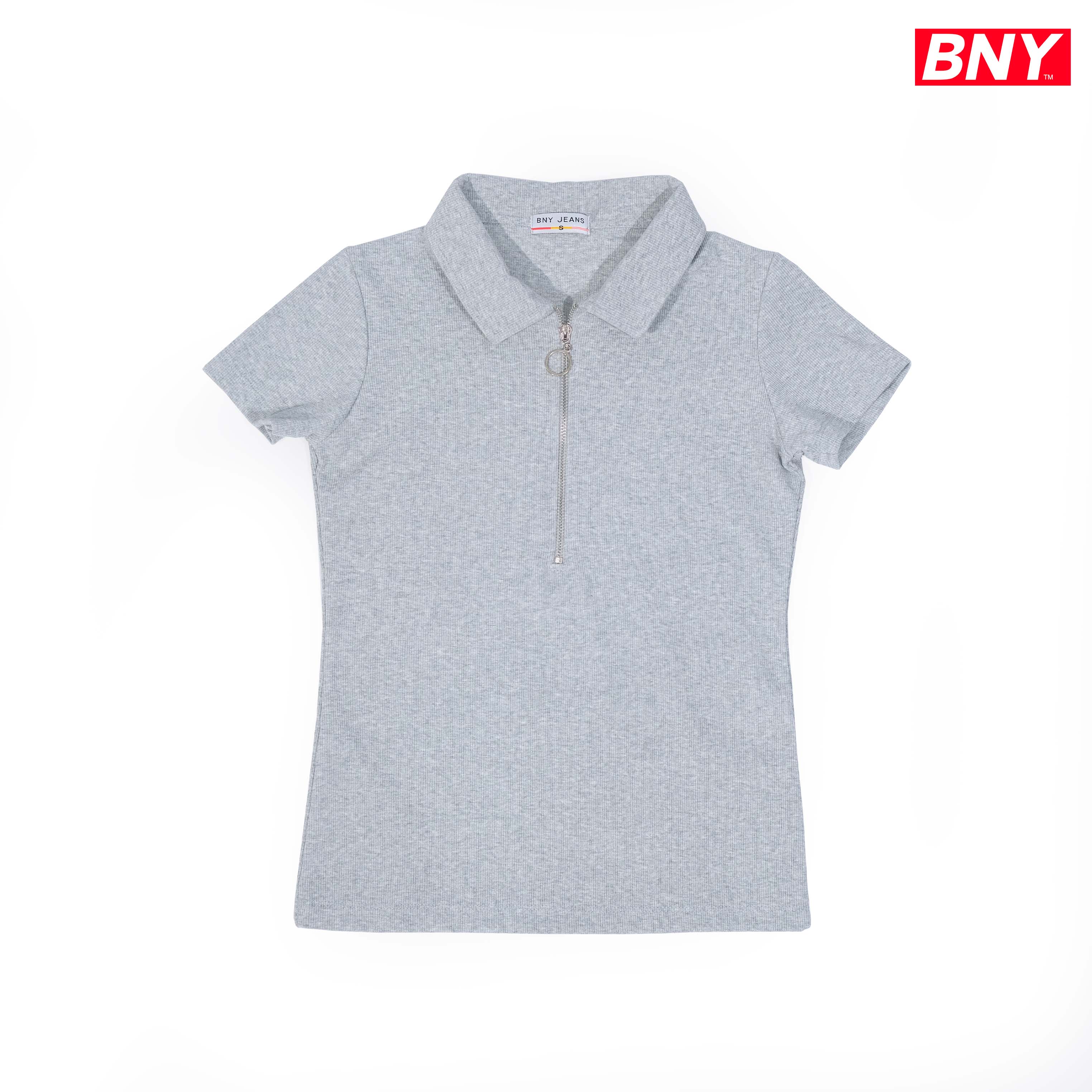 Product Name: LADIES' RIB SHORT SLEEVES ZIPPER TOP (506)