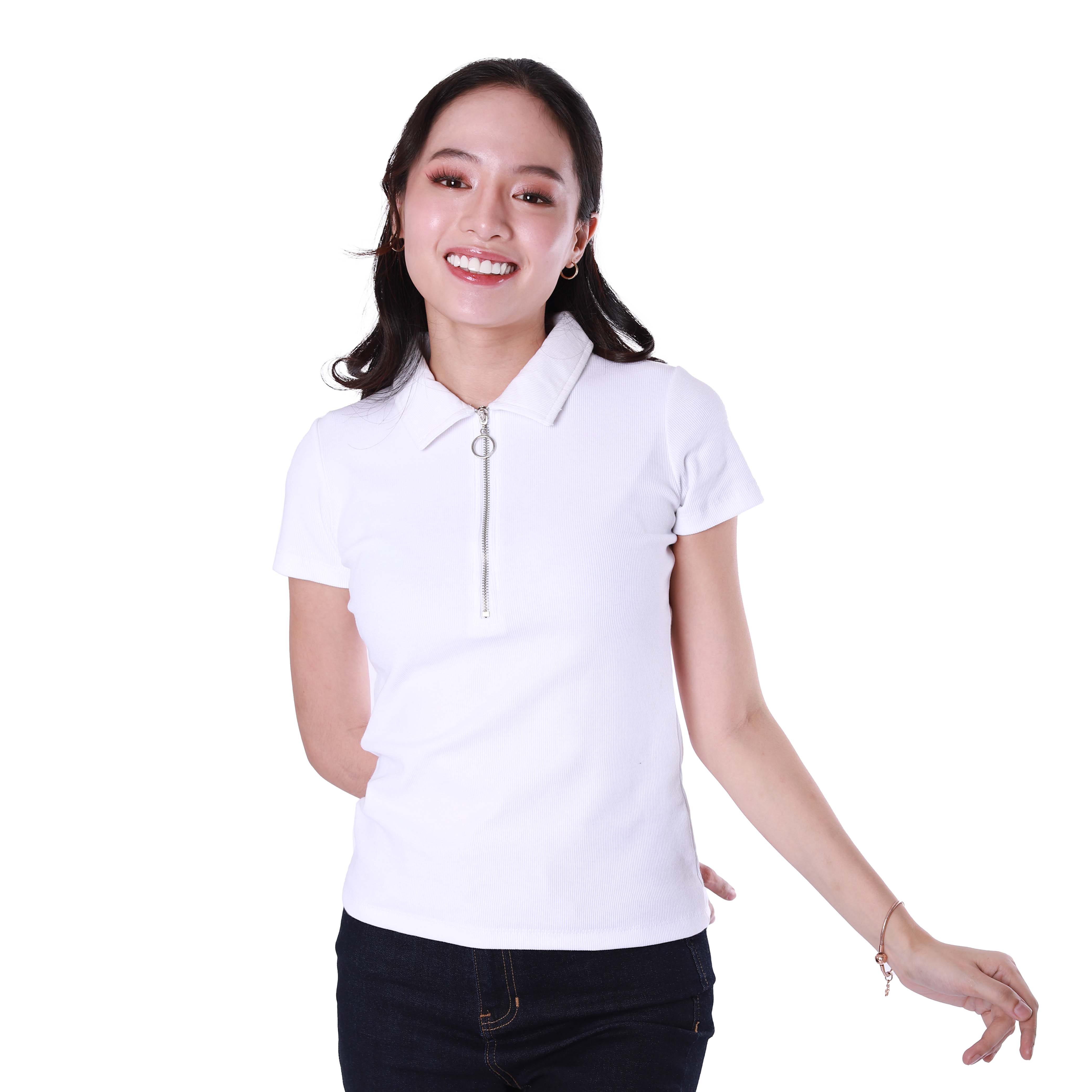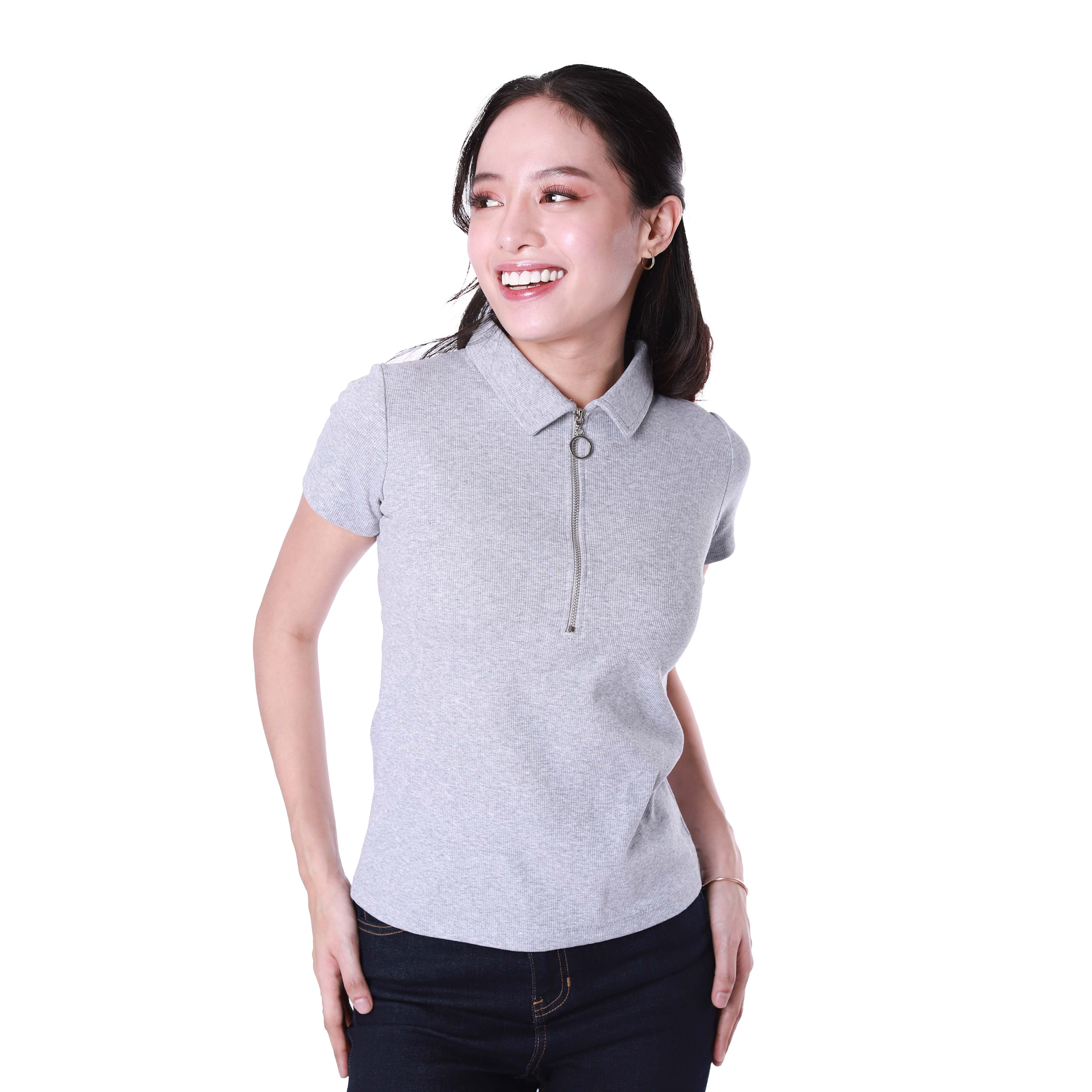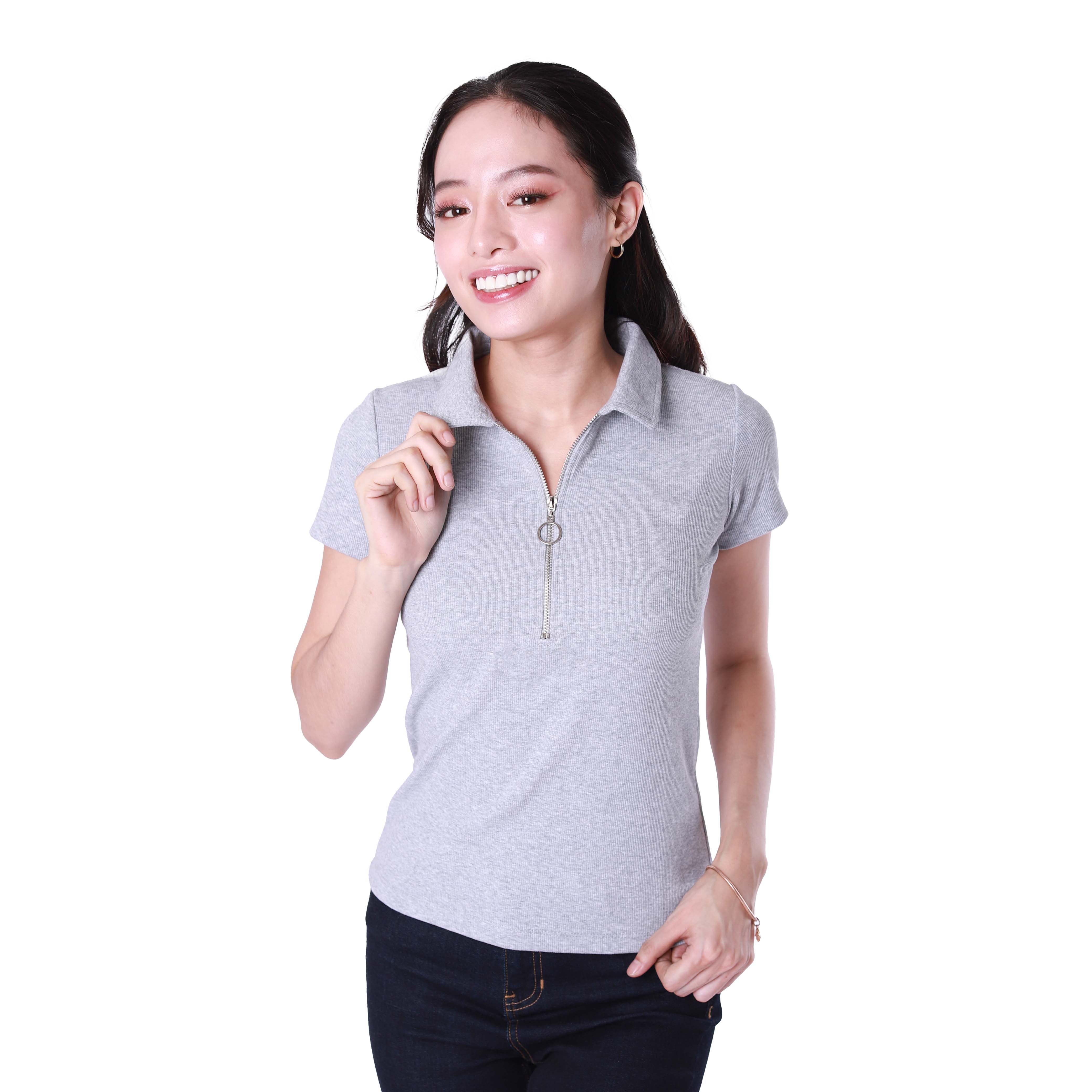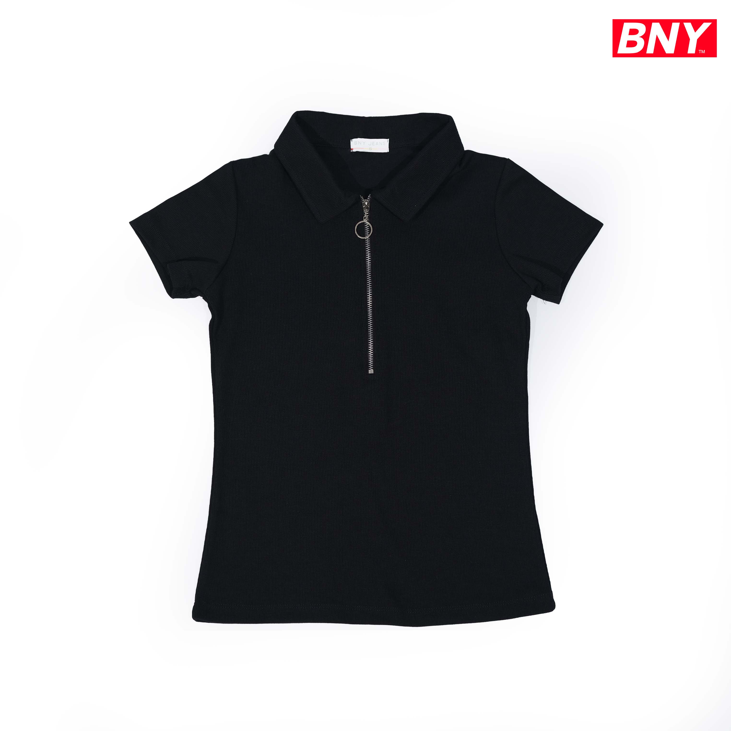 Product Name: LADIES' RIB SHORT SLEEVES ZIPPER TOP (506)